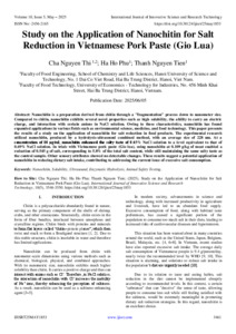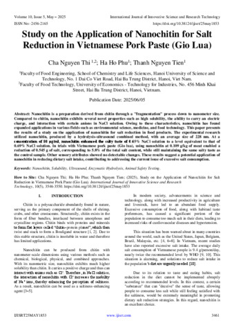 Thi, Cha Nguyen and Phu, Ha Ho and Tien, Thanh Nguyen (2025) Study on the Application of Nanochitin for Salt Reduction in Vietnamese Pork Paste (Gio Lua). International Journal of Innovative Science and Research Technology, 10 (5): 25may1853. pp. 3461-3466. ISSN 2456-2165