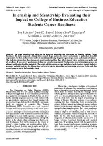 F. Asajar, Bea and D. Bayya, David and V. Dumrique, Mylene Bea and L. Saraos, Allen Earl and C. Ambrosio, Agnes (2025) Internship and Mentorship Evaluating their Impact on College of Business Education Students Career Readiness. International Journal of Innovative Science and Research Technology, 10 (8): 25aug009. pp. 40-48. ISSN 2456-2165
