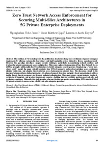 Uche James, Ugoaghalam and Matthew Ijiga, Onuh and Anebi Enyejo, Lawrence (2025) Zero Trust Network Access Enforcement for Securing Multi-Slice Architectures in 5G Private Enterprise Deployments. International Journal of Innovative Science and Research Technology, 10 (8): 25aug323. pp. 64-78. ISSN 2456-2165