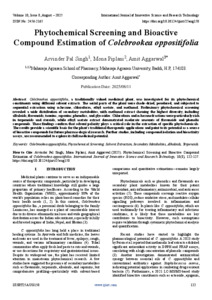 Pal Singh, Arvinder and Piplani, Mona and Aggarwal, Amit (2025) Phytochemical Screening and Bioactive Compound Estimation of Colebrookea oppositifolia. International Journal of Innovative Science and Research Technology, 10 (8): 25aug150. pp. 122-127. ISSN 2456-2165
