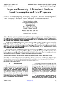 Boonnithiyanyong, Tuchcha and Songkram, Kantapong and Ariyawongsakul, Narawit and Thongthip, Pasin and Pijarn, Nichaporn and Ekvitayavetchanukul, Patraporn (2025) Sugar and Immunity: A Behavioral Study on Sweet Consumption and Cold Frequency. International Journal of Innovative Science and Research Technology, 10 (8): 25aug273. pp. 210-215. ISSN 2456-2165