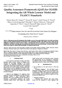 H. Caranzo, Rhena Sherra and M. Anore, Russel and R. Torres, Jerald Vernon and Cecilia Bongcawel, Maria and V. Merin, Meridith and T. Enriquez, Merycris and P. Tutor, Segundino and P. Euraoba, Jonna and R. Tutor, Mary Annie and Dale Lapidez, Lorenz (2025) Quality Assurance Framework (QAF) for OLSHS: Integrating the AR Whole Learner Model and PAASCU Standards. International Journal of Innovative Science and Research Technology, 10 (8): 25aug192. pp. 216-218. ISSN 2456-2165