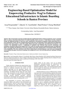 This research aims to develop an engineering-based optimization model to empower productive waqf as a strategic effort to enhance educational infrastructure in Islamic boarding schools (pesantren ) within Banten Province, Indonesia. Despite the significant potential of waqf assets, their contribution to educational development remains underutilized due to poor management systems and lack of engineering-based frameworks. By integrating systems engineering and optimization techniques, this study proposes a model that enables efficient allocation, management, and monitoring of productive waqf resources. The methodology involves a combination of qualitative data collection from pesantren stakeholders and quantitative simulation using decision-support tools. The results show that the proposed optimization model can significantly improve the planning and utilization of waqf assets, leading to measurable enhancements in educational facilities and long- term sustainability. This study contributes to the field of engineering by demonstrating how waqf -based asset management can be optimized through a structured, technology-driven approach to solve real-world infrastructure challenges in Islamic education.