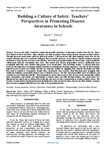 J. Daliva, Janzel (2025) Building a Culture of Safety: Teachers' Perspectives in Promoting Disaster Awareness in Schools. International Journal of Innovative Science and Research Technology, 10 (8): 25aug099. pp. 270-271. ISSN 2456-2165
