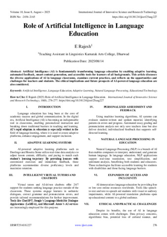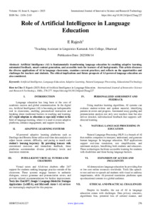 Rajesh, E (2025) Role of Artificial Intelligence in Language Education. International Journal of Innovative Science and Research Technology, 10 (8): 25aug227. pp. 276-277. ISSN 2456-2165