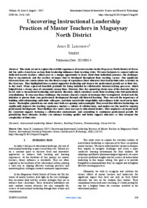 Limosnero, Arnie H. (2025) Uncovering Instructional Leadership Practices of Master Teachers in Magsaysay North District. International Journal of Innovative Science and Research Technology, 10 (8): 25aug104. pp. 310-311. ISSN 2456-2165