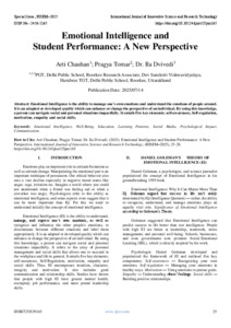 Chauhan, Arti and Tomar, Pragya and Dvivedi, Ila (2025) Emotional Intelligence and Student Performance: A New Perspective. International Journal of Innovative Science and Research Technology, 10 (6): 25jun165. pp. 25-28. ISSN 2456-2165