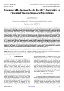 Kande, Jayanth (2025) Examine ML Approaches to Identify Anomalies in Financial Transactions and Operations. International Journal of Innovative Science and Research Technology, 10 (6): 25jun176. pp. 59-62. ISSN 2456-2165