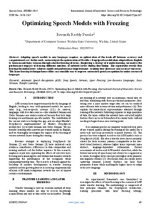 Pasula, Revanth Reddy (2025) Optimizing Speech Models with Freezing. International Journal of Innovative Science and Research Technology, 10 (6): 25jun167. pp. 69-73. ISSN 2456-2165