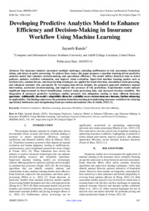 Kande, Jayanth (2025) Developing Predictive Analytics Model to Enhance Efficiency and Decision-Making in Insurance Workflow Using Machine Learning. International Journal of Innovative Science and Research Technology, 10 (6): 25jun179. pp. 101-104. ISSN 2456-2165