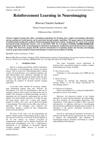 Sarakam, Bhuvan Chandra (2025) Reinforcement Learning in Neuroimaging. International Journal of Innovative Science and Research Technology, 10 (6): 25jun172. pp. 123-132. ISSN 2456-2165