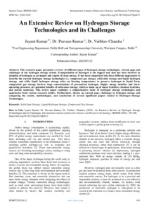 Kumar, Jayant and Kumar, Praveen and Chandra, Vaibhav (2025) An Extensive Review on Hydrogen Storage Technologies and its Challenges. International Journal of Innovative Science and Research Technology, 10 (6): 25jul612. pp. 199-206. ISSN 2456-2165