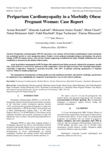Bentaleb, Asmae and Laaboub, Khaoula and Amine Zouaki, Mohamed and Charit, Monir and Mohamed Alali, Nehad and Elachhab, Nabil and Tachinante, Rajae and Elhassouni, Fatima (2025) Peripartum Cardiomyopathy in a Morbidly Obese Pregnant Woman: Case Report. International Journal of Innovative Science and Research Technology, 10 (8): 25aug196. pp. 342-345. ISSN 2456-2165