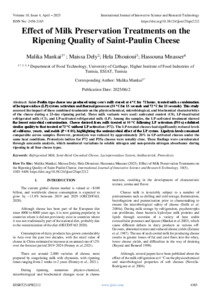 Mankai, Malika and Dely, Maissa and Dhouioui, Hela and Mnasser, Hassouna (2025) Effect of Milk Preservation Treatments on the Ripening Quality of Saint-Paulin Cheese. International Journal of Innovative Science and Research Technology, 10 (4): 25apr2212. pp. 4385-4409. ISSN 2456-2165