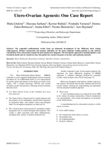 Lhaloui, Maha and Sarhane, Hassnaa and Bahida, Kawtar and Yartaoui, Nouhaila and Zahra Belouzza, Fatima and Etber, Amina and Benouicha, Nisrine and Baydada, Aziz (2025) Utero-Ovarian Agenesis: One Case Report. International Journal of Innovative Science and Research Technology, 10 (8): 25aug113. pp. 484-486. ISSN 2456-2165
