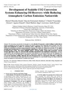 Olayinka Jinadu, Shereef and Emmanuel Akinleye, Kayode and Nwaamaka Onwusi, Chinelo and Omachi, Agama and Matthew Ijiga, Onuh and Anebi Enyejo, Lawrence (2025) Development of Scalable CO2 Conversion Systems Enhancing Oil Recovery while Reducing Atmospheric Carbon Emissions Nationwide. International Journal of Innovative Science and Research Technology, 10 (8): 25aug627. pp. 538-551. ISSN 2456-2165