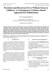 Reddy I., Dr. Venugopal (2025) Persistent and Recurrent Fever Without Focus in Children: A Contemporary Evidence-Based Approach for Pediatricians. International Journal of Innovative Science and Research Technology, 10 (8): 25aug440. pp. 661-664. ISSN 2456-2165