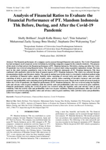 The financial performance of a company can be assessed through financial ratio analysis. The Covid-19 pandemic has had an impact on all corporate sectors in Indonesia, including companies engaged in the cosmetics industry. The purpose of this study is to find out how the financial performance of PT. Mandom Indonesia, Tbk before, during, and after the Covid- 19 pandemic was reviewed using financial ratios. This study is a mixed study using sequential explanatory design. The data used in this study includes quantitative data in the form of financial statements of PT. Mandom Indonesia, Tbk then continued with qualitative data in the form of annual reports of PT. Mandom Indonesia, Tbk which was collected through documentation studies and literature studies. The analysis method used in this study is a descriptive statistical method using the calculation of financial ratios, namely liquidity ratios consisting of current ratios and quick ratios, solvency ratios consisting of debt to asset ratio and debt to equity ratios, activity ratios consisting of inventory turnover and receivable turnover and profitability ratio consisting of net profit margin and return on assets. Based on the results of research analysis before the Covid-19 pandemic, the financial performance of PT. Mandom Indonesia, Tbk was reviewed using the liquidity ratio and solvency ratio in good condition, while the activity ratio and profitability ratio were reviewed in poor condition. Financial performance during the Covid-19 period was reviewed using the liquidity ratio and solvency ratio in good condition, while the activity ratio and profitability ratio were in poor condition. Financial performance after the Covid-19 pandemic was reviewed using liquidity ratios and solvency ratios in good condition, while activities ratios and profitability ratios were in poor conditions.