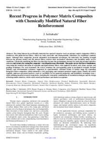 Sethubathi, J. (2025) Recent Progress in Polymer Matrix Composites with Chemically Modified Natural Fiber Reinforcement. International Journal of Innovative Science and Research Technology, 10 (8): 25aug819. pp. 828-833. ISSN 2456-2165