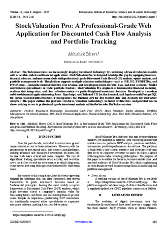 Bhave, Abhishek (2025) StockValuation Pro: A Professional-Grade Web Application for Discounted Cash Flow Analysis and Portfolio Tracking. International Journal of Innovative Science and Research Technology, 10 (8): 25aug657. pp. 868-876. ISSN 2456-2165