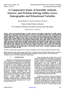 Kumar, Rajesh and Kumar Acharya, Amulya (2025) A Comparative Study of Scientific Attitude, Interest, and Problem-Solving Ability Across Demographic and Educational Variables. International Journal of Innovative Science and Research Technology, 10 (8): 25aug734. pp. 931-938. ISSN 2456-2165