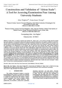 Varghese, Abin and Annie George, Susan (2025) Construction and Validation of “Abisus Scale”: A Tool for Assessing Examination Fear Among University Students. International Journal of Innovative Science and Research Technology, 10 (8): 25aug741. pp. 992-997. ISSN 2456-2165