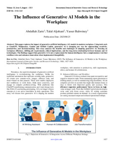 Zarie, Abdullah and Aljohani, Talal and Bahwiney, Yasser (2025) The Influence of Generative AI Models in the Workplace. International Journal of Innovative Science and Research Technology, 10 (8): 25aug468. pp. 1027-1029. ISSN 2456-2165