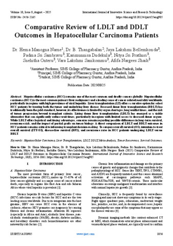 Manogna Narne, Dr. Hema and Thangabalan, Dr. B. and Lakshmi Bellemkonda, Jaya and Sri Sambravu, Padma and Dudekula, Karimunnisa and Sri Prathuri, Nitya and Onteru, Snehitha and Lakshmi Sanikommu, Vara and Nargees Shaik, Afifa (2025) Comparative Review of LDLT and DDLT Outcomes in Hepatocellular Carcinoma Patients. International Journal of Innovative Science and Research Technology, 10 (8): 25aug905. pp. 1056-1061. ISSN 2456-2165
