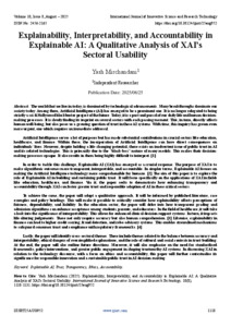Mirchandani, Yash (2025) Explainability, Interpretability, and Accountability in Explainable AI: A Qualitative Analysis of XAI's Sectoral Usability. International Journal of Innovative Science and Research Technology, 10 (8): 25aug952. pp. 1118-1131. ISSN 2456-2165