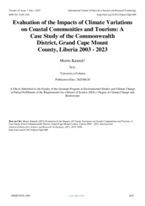 Kanneh, Morris (2025) Evaluation of the Impacts of Climate Variations on Coastal Communities and Tourism: A Case Study of the Commonwealth District, Grand Cape Mount County, Liberia 2003 - 2023. International Journal of Innovative Science and Research Technology, 10 (7): 25jul1609. pp. 3653-3698. ISSN 2456-2165