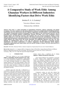 N. A. A. Lomotey, Jemima (2025) A Comparative Study of Work Ethic Among Ghanaian Workers in Different Industries: Identifying Factors that Drive Work Ethic. International Journal of Innovative Science and Research Technology, 10 (8): 25aug904. pp. 1214-1221. ISSN 2456-2165