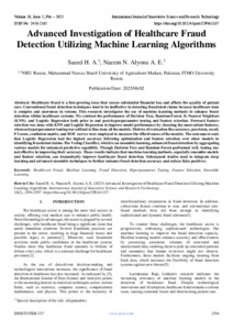H. A., Saeed and Alyona A. E., Naeem N. (2025) Advanced Investigation of Healthcare Fraud Detection Utilizing Machine Learning Algorithms. International Journal of Innovative Science and Research Technology, 10 (2): 25Feb1337. pp. 2594-2597. ISSN 2456-2165