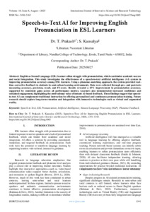 Prakash, T. and Kausalya, S. (2025) Speech-to-Text AI for Improving English Pronunciation in ESL Learners. International Journal of Innovative Science and Research Technology, 10 (8): 25aug1065. pp. 1341-1343. ISSN 2456-2165