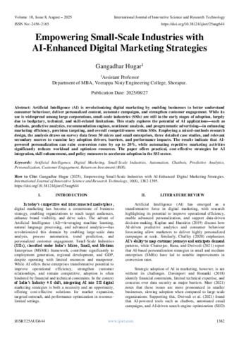 Hugar, Gangadhar (2025) Empowering Small-Scale Industries with AI-Enhanced Digital Marketing Strategies. International Journal of Innovative Science and Research Technology, 10 (8): 25aug644. pp. 1382-1395. ISSN 2456-2165
