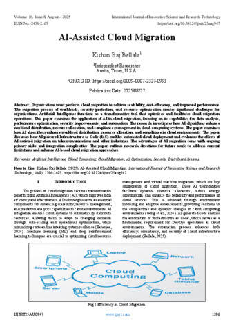 Raj Bellala, Kishan (2025) AI-Assisted Cloud Migration. International Journal of Innovative Science and Research Technology, 10 (8): 25aug947. pp. 1396-1403. ISSN 2456-2165