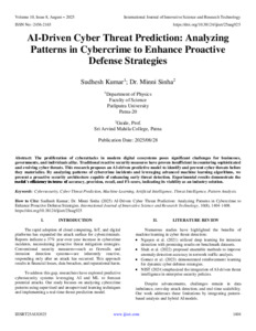 Kumar, Sudhesh and Sinha, Minni (2025) AI-Driven Cyber Threat Prediction: Analyzing Patterns in Cybercrime to Enhance Proactive Defense Strategies. International Journal of Innovative Science and Research Technology, 10 (8): 25aug925. pp. 1404-1408. ISSN 2456-2165