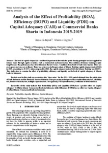 Hidayati, Ilma and Segoro, Waseso (2025) Analysis of the Effect of Profitability (ROA), Efficiency (BOPO) and Liquidity (FDR) on Capital Adequacy (CAR) at Commercial Banks Sharia in Indonesia 2015-2019. International Journal of Innovative Science and Research Technology, 10 (8): 25aug654. pp. 1445-1454. ISSN 2456-2165
