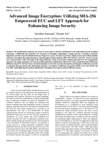 Samsani, Surekha and Asi, Deepti (2025) Advanced Image Encryption: Utilizing SHA-256 Empowered ECC and LFT Approach for Enhancing Image Security. International Journal of Innovative Science and Research Technology, 10 (8): 25aug864. pp. 1530-1538. ISSN 2456-2165