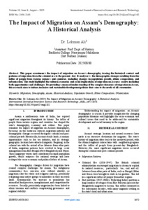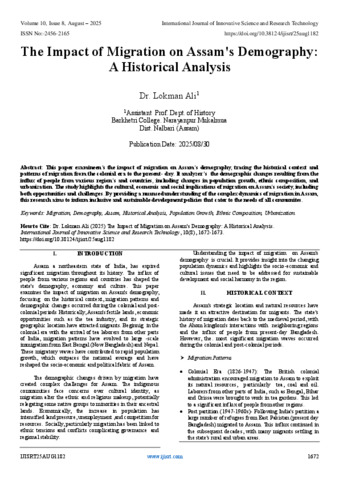 Ali, Dr. Lokman (2025) The Impact of Migration on Assam's Demography: A Historical Analysis. International Journal of Innovative Science and Research Technology, 10 (8): 25aug1182. pp. 1672-1673. ISSN 2456-2165