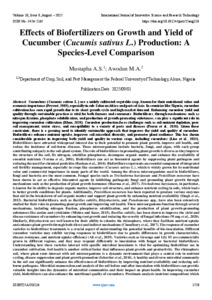 S., Mustapha A. and A., Awodun M. (2025) Effects of Biofertilizers on Growth and Yield of Cucumber (Cucumis sativus L.) Production: A Species-Level Comparison. International Journal of Innovative Science and Research Technology, 10 (8): 25aug226. pp. 1728-1737. ISSN 2456-2165