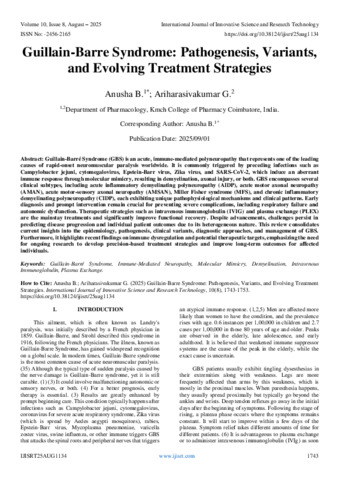 B., Anusha and G., Ariharasivakumar (2025) Guillain-Barre Syndrome: Pathogenesis, Variants, and Evolving Treatment Strategies. International Journal of Innovative Science and Research Technology, 10 (8): 25aug1134. pp. 1743-1753. ISSN 2456-2165