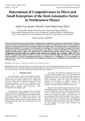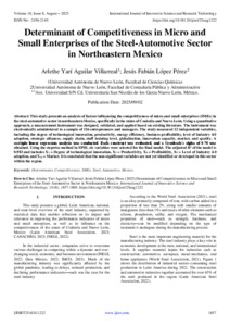 Aguilar Villarreal, Arlethe Yarí and López Pérez, Jesús Fabián (2025) Determinant of Competitiveness in Micro and Small Enterprises of the Steel-Automotive Sector in Northeastern Mexico. International Journal of Innovative Science and Research Technology, 10 (8): 25aug1222. pp. 1857-1869. ISSN 2456-2165
