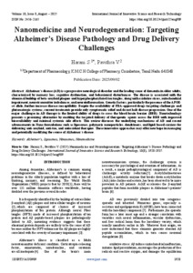 S., Harani and V., Pavithra (2025) Nanomedicine and Neurodegeneration: Targeting Alzheimer’s Disease Pathology and Drug Delivery Challenges. International Journal of Innovative Science and Research Technology, 10 (8): 25aug909. pp. 1928-1937. ISSN 2456-2165