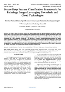 Kumar Shah, Prabhat and Kumar Soni, Ajeet and Parnami, Aryan and Gupta, Kushagree (2025) Secure Deep Feature Classification Framework for Pathology Images Leveraging Blockchain and Cloud Technologies. International Journal of Innovative Science and Research Technology, 10 (3): 25mar1799. pp. 3351-3376. ISSN 2456-2165