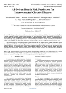 Karthik, Medicharla and Praveen Sunand, Avisetti and Bala Santhosh, Surampudi and Durga Sai, K. Naga Venkata and Ganesh, G. Sriram (2025) AI-Driven Health Risk Prediction for Interconnected Chronic Diseases. International Journal of Innovative Science and Research Technology, 10 (4): 25apr847. pp. 4476-4486. ISSN 2456-2165