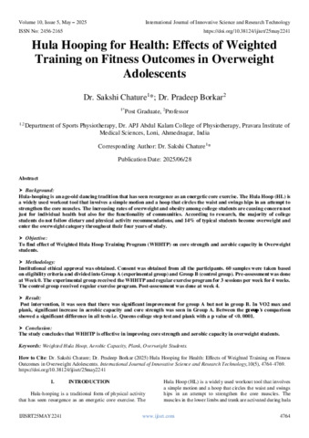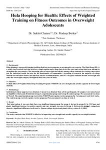 Chature, Dr. Sakshi and Borkar, Dr. Pradeep (2025) Hula Hooping for Health: Effects of Weighted Training on Fitness Outcomes in Overweight Adolescents. International Journal of Innovative Science and Research Technology, 10 (5): 25may2241. pp. 4764-4769. ISSN 2456-2165