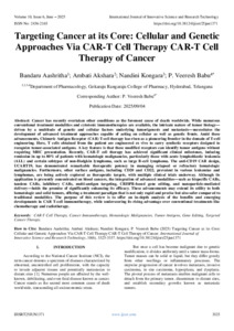 Aashritha, Bandaru and Akshara, Ambati and Kongara, Nandini and Babu, P. Veeresh (2025) Targeting Cancer at its Core: Cellular and Genetic Approaches Via CAR-T Cell Therapy CAR-T Cell Therapy of Cancer. International Journal of Innovative Science and Research Technology, 10 (6): 25jun1371. pp. 3325-3337. ISSN 2456-2165