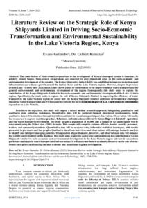 Getembe, Evans and Kimutai, Gilbert (2025) Literature Review on the Strategic Role of Kenya Shipyards Limited in Driving Socio-Economic Transformation and Environmental Sustainability in the Lake Victoria Region, Kenya. International Journal of Innovative Science and Research Technology, 10 (7): 25jul1574. pp. 3748-3756. ISSN 2456-2165