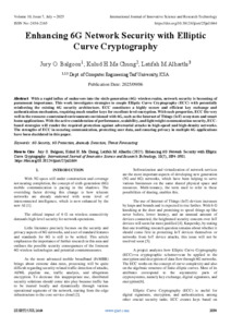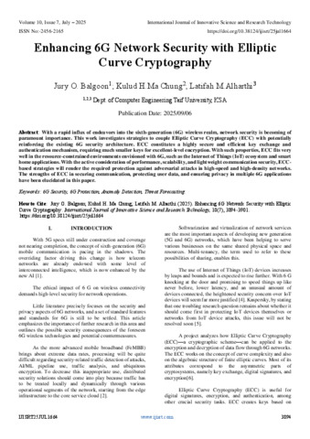 Balgoon, Jury O. and Chung, Kulud H.Ma and Alharthi, Latifah M. (2025) Enhancing 6G Network Security with Elliptic Curve Cryptography. International Journal of Innovative Science and Research Technology, 10 (7): 25jul1664. pp. 3894-3901. ISSN 2456-2165