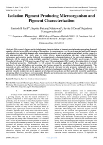 B Patil, Santosh and Puttaraj Nalatawad, Suprita and S Desai, Savita and Hanagawadimath, Rajashree (2025) Isolation Pigment Producing Microorganism and Pigment Characterization. International Journal of Innovative Science and Research Technology, 10 (7): 25jul275. pp. 3946-3952. ISSN 2456-2165